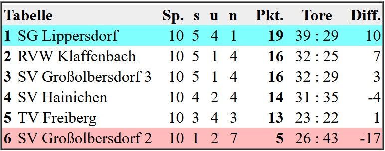 Aktuelle Tabelle der Bezirksliga Chemnitz